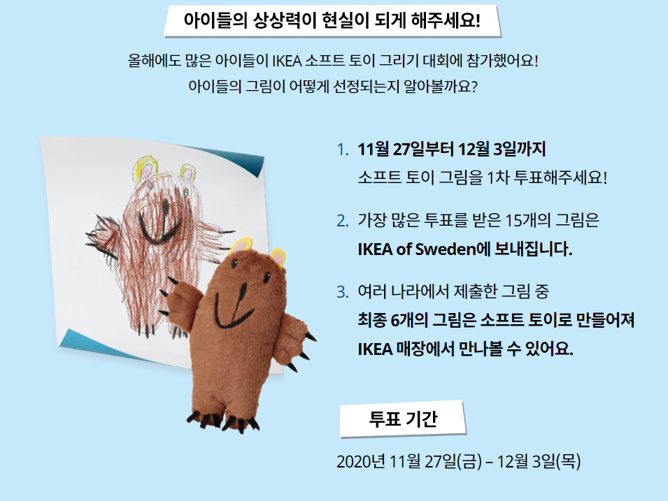 이케아 소프트 토이 그리기 대회 투표기간 27일부터 2020 IKEA 15개 선정